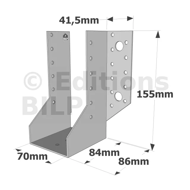 - Robustesse et épaisseur : Fabriqués en acier galvanisé, ces sabots à ailes extérieures classiques sont extrêmement résistants à la corrosion et offrent une épaisseur adaptée pour supporter des charges lourdes.