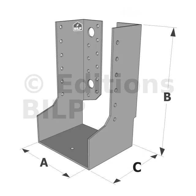 Les grands sabots à ailes intérieures sont préconisés pour assembler une structure efficacement sans usinage à façon et ainsi fiabiliser l’ouvrage. Ils sont conçus pour être totalement compatibles avec les ancrages Simpson Strong-Tie et donc faciliter la fixation sur support béton.