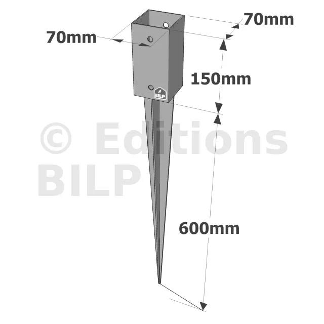 Pied de poteau carré de jardin à enfoncer - Réf. PPJET70/750