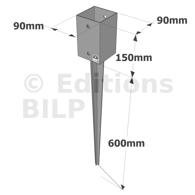 Pied de poteau carré de jardin à enfoncer - Réf. PPJET90/750
