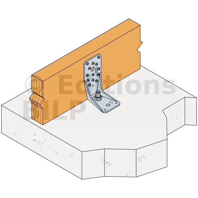 Voir la gamme d’ancrage Simpson Strong-Tie pour trouver le produit adéquat. Les solutions d’ancrage typiques sont BOAXII, SET-XP, WA, AT-HP et dépendent du type de béton, l’entraxe et les distances aux bords.
