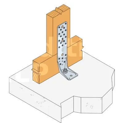 Voir la gamme d’ancrage Simpson Strong-Tie pour trouver le produit adéquat. Les solutions d’ancrage typiques sont BOAXII, SET-XP, WA, AT-HP et dépendent du type de béton, l’entraxe et les distances aux bords.