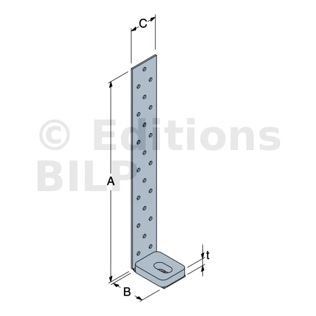 Ancrage pour montant d’ossature 40x390x52mm épaisseur 2mm - Réf. AH39050/2-FR