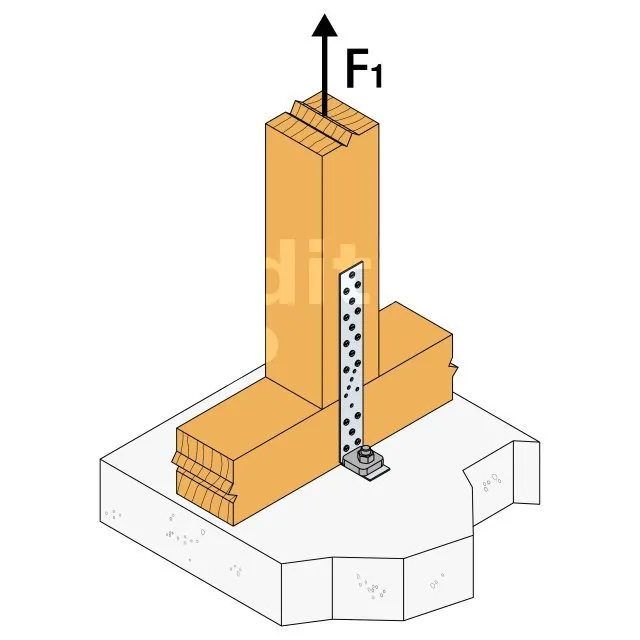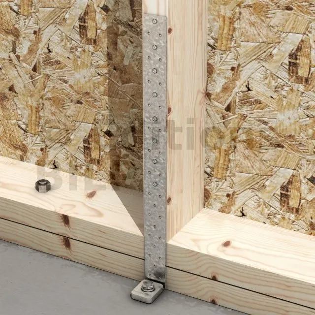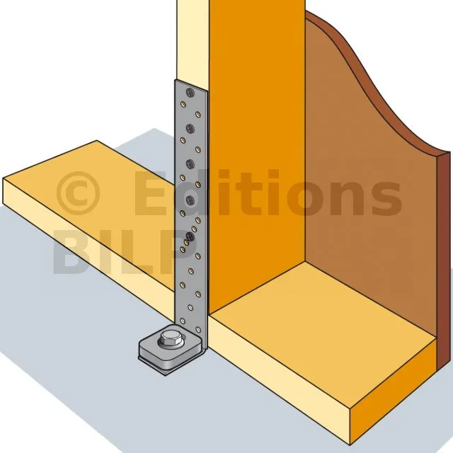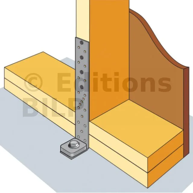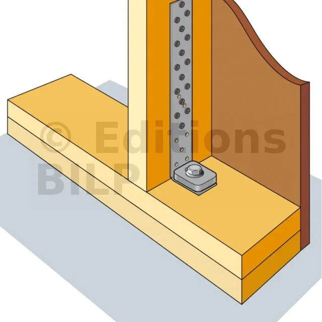 - Permet d‘ancrer solidement le mur ossature bois au sol (préconisé en zone sismique),