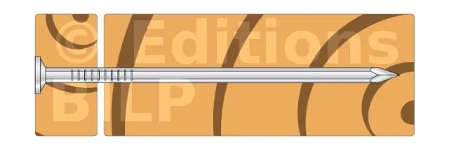 - Forme cannelée : fend moins le bois qu’une pointe de profil rond ou carré,