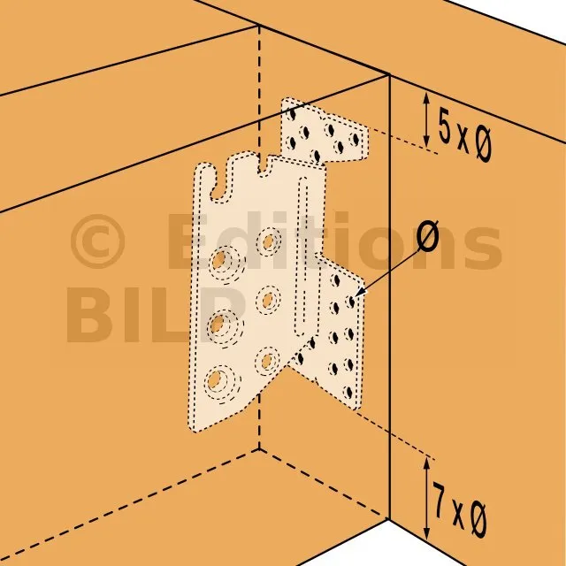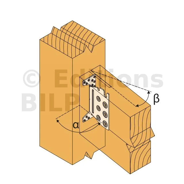 L’étrier TUS à âme intérieure permet un assemblage invisible. Plié sur demande, convient aux applications avec un angle allant de 30 à 85°. L‘encoche en tête facilite la pose sur le chantier.