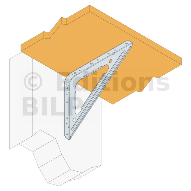 La console SBV est utilisée pour la mise en œuvre d’étagères. Elle est renforcée afin de pouvoir reprendre de fortes charges.