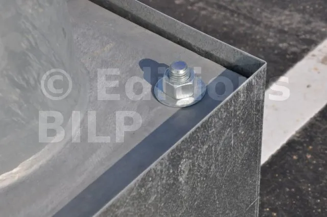 A l’aide d’une mèche à bois plate de diamètre supérieur à celui de la rondelle, percer à partir du centre des trous à une profondeur = épaisseur de l’écrou + épaisseur de la rondelle + marge de la longueur de la tige.