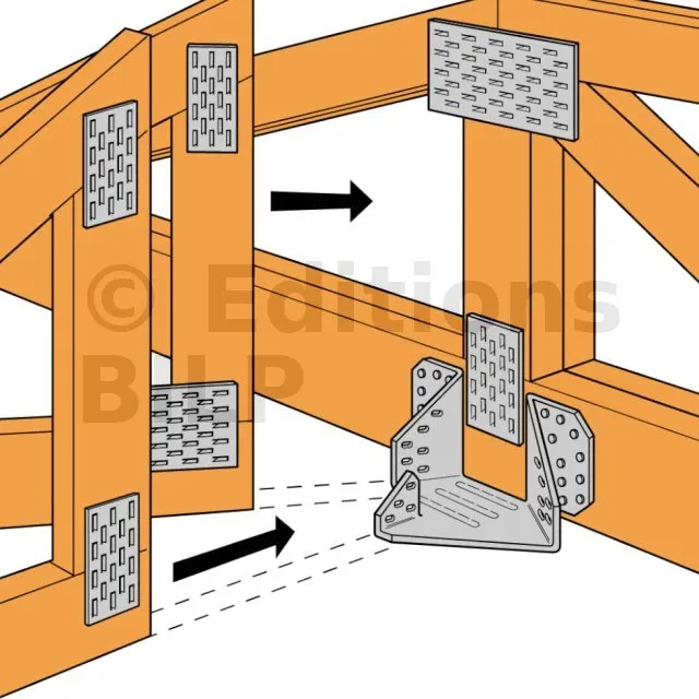 - Les éléments réalisés avec 2 plis doivent être assemblés entre eux afin qu’ils agissent comme un seul et même élément (voir Eurocode 5).