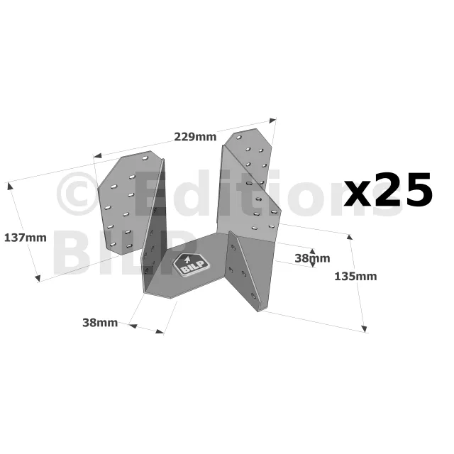 Etrier pour croupe : arêtiers doubles - Réf. THJA26_25
