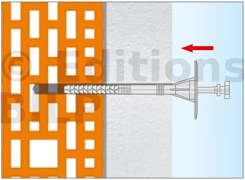 - Poser les chevilles sur les briques creuses qui ne présentent pas beaucoup de défauts pour éviter la rupture des parois intérieures du substrat et réduire la résistance au retrait des fixations.