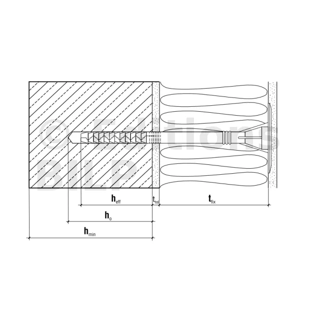 - Profondeur d’ancrage (hef)70mm