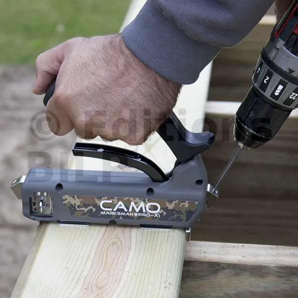 - CAMO dispose d’une gamme complète d’outillage pour la fixation invisible des lames de terrasse.