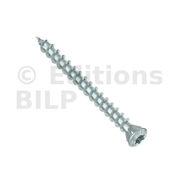 HECO-TOPIX-plus, vis pour planchers, tête fraisée bombée avec nervures de fraisage, T-Drive, filet total variable, zingué blanc, A3K - Réf. 60750