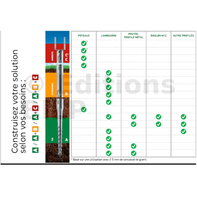 Nos vis extensibles professionnelles sont une solution fiable pour tous vos projets, quels que soient le sol et les conditions de chantier. Elles peuvent être facilement transportées.