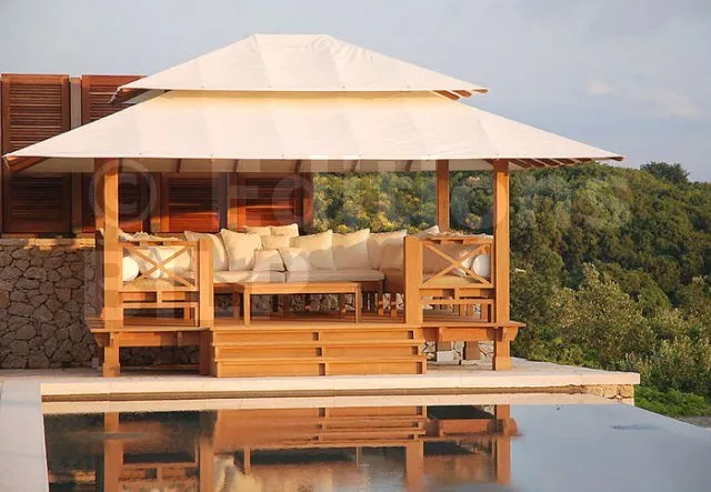 Une plateforme sur pilotis pour une gloriette a pour hauteur entre 60 et 100 cm. Le pilotis ne joue pas uniquement le rôle de sur-élévateur mais également de support pour la couverture de l’ouvrage.