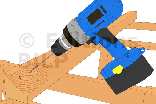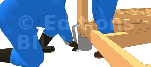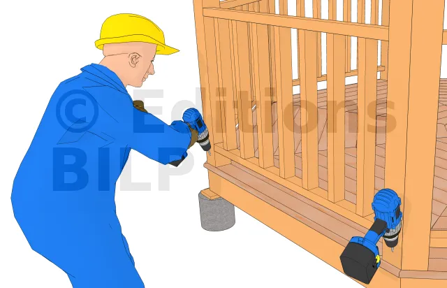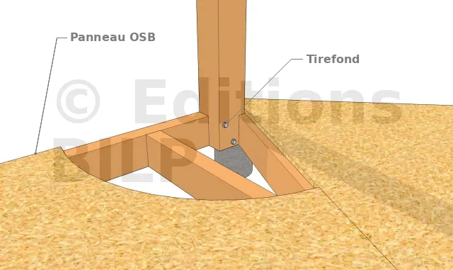 - On peut fixer les poteaux d’une structure à panneau avec des tire-fonds traversant le poteau jusqu’à la poutre porteuse ou la solive.
