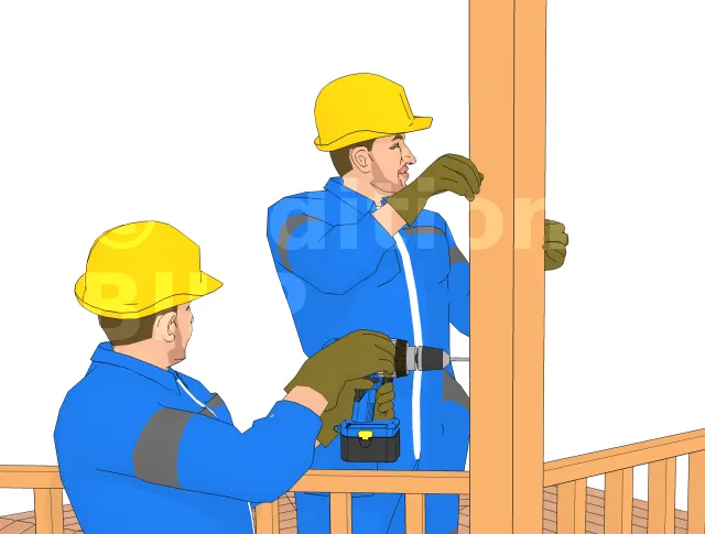 La pose à l’extérieur de la plateforme correspond à la fixation des poteaux sur support(s) en béton ou à la fixation sur une structure portante (poutres porteuses ou solives).